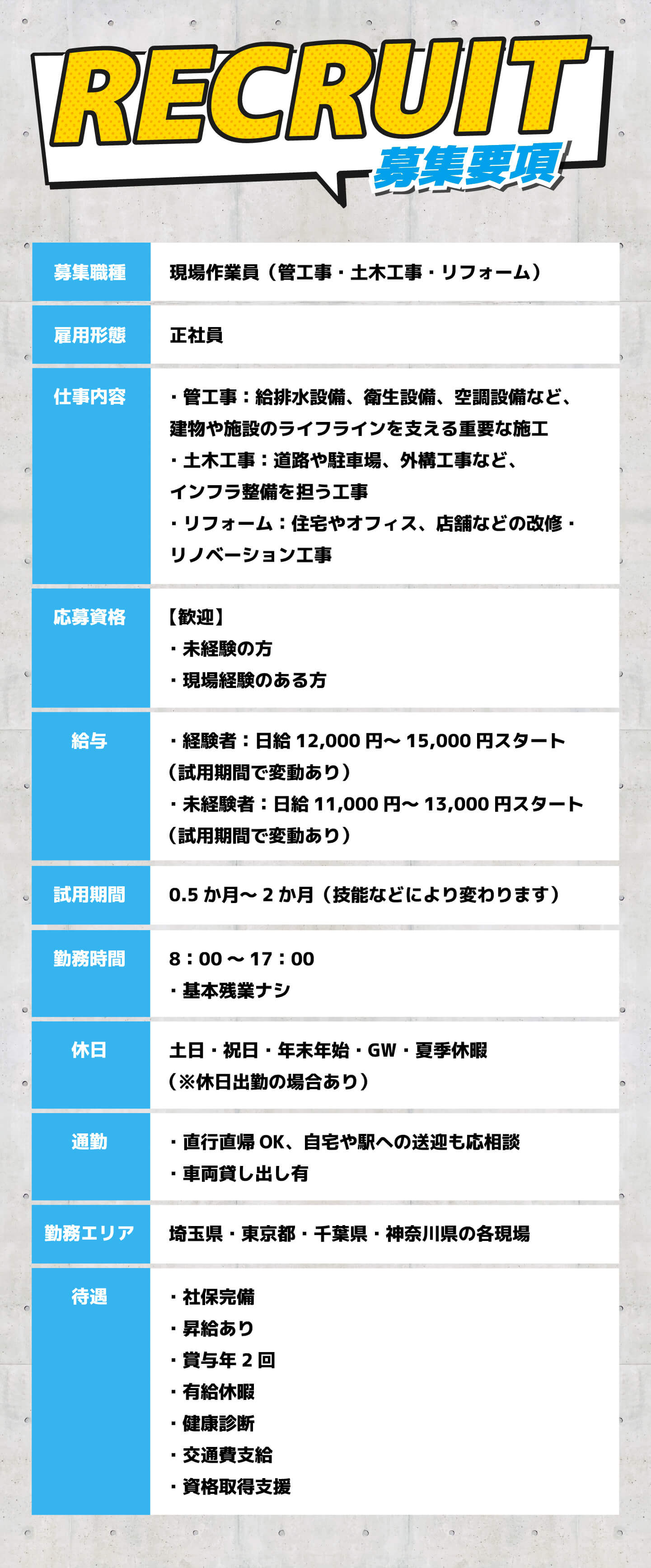 | 事業内容 | 管工事,土木工事,リフォーム |